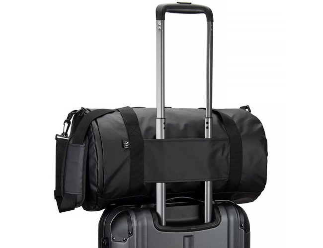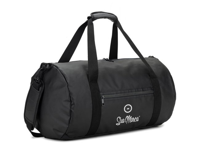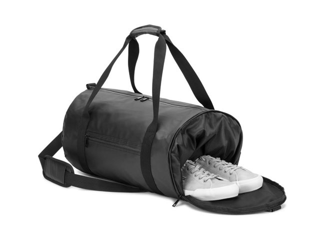 Bolsa esportiva em formato cilíndrico adequado para levar o imprescindível para os seus treinos e atividades. Composto por poliéster reciclado 600D de alta densidade, com revestimento resistente à água, e forro em poliéster reciclado 210D. Possui um compartimento principal espaçoso para o seu equipamento, um compartimento lateral para sapatos ou sapatilhas e um bolso frontal. Possui pegas reforçadas e almofadadas, e a alça, removível, em webbing com acolchoamento, tornam o transporte desta bolsa mais prático.
