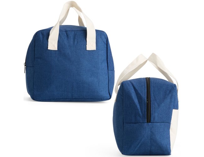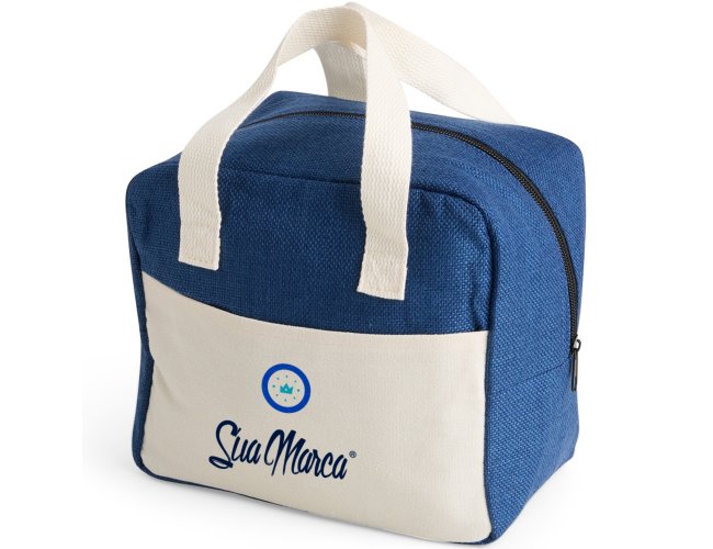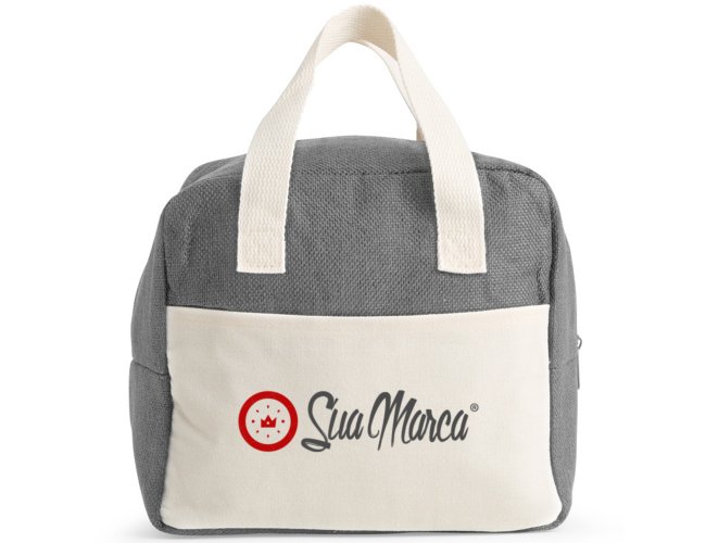 Bolsa Térmica Personalizada de Poliéster 8 Litros XV9061, confeccionada em poliéster, com fechamento em zíper e capacidade máxima de 8 litros. Possui revestimento térmico em folha de alumínio, além de bolso frontal aberto e alças de mão em poliéster mesclado com algodão. MEDIDA: Altura: 21 cm X Largura: 22,5 cm X Profundidade: 14 cm. Peso aproximado (g): 86