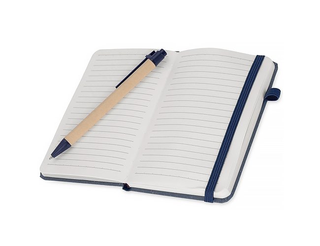 Com design sustentável, a Caderneta Personalizada Ecológica E Caneta XV8288 une caderneta de capa dura eco (palha de trigo) e caneta esferográfica. As 80 folhas pautadas garantem escrita organizada, enquanto a fita de fechamento e o porta-canetas deixam o conjunto sempre pronto para reuniões, estudos e eventos. Especificações: Capa: fibra de palha de trigo (capa dura) - Miolo: ~80 folhas brancas pautadas + 2 folhas de guarda - Fechamento: fita - Acessório: porta-canetas elástico - Caneta: esferográfica azul 1,0 mm, corpo em papelão, clipe, ponteira em plástico, acionamento por clique - Medidas da caderneta: 14 × 9,3 × 1,3 cm (C × L × E) - Medidas da caneta: 14 × 1 cm - Peso aproximado do conjunto: 107 g Indicado para: brindes sustentáveis, kits corporativos, eventos e uso diário