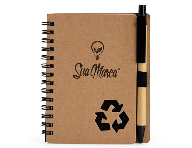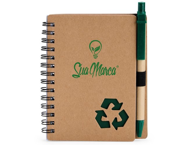 - O que torna o caderno ecológico uma escolha estratégica? Ele reforça uma mensagem positiva de responsabilidade e sustentabilidade, alinhando a marca a iniciativas conscientes, sem abrir mão de utilidade, boa apresentação e alta aceitação em ações corporativas.