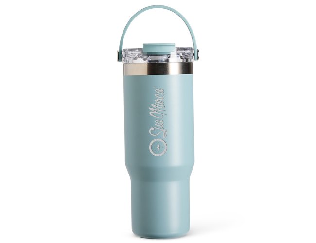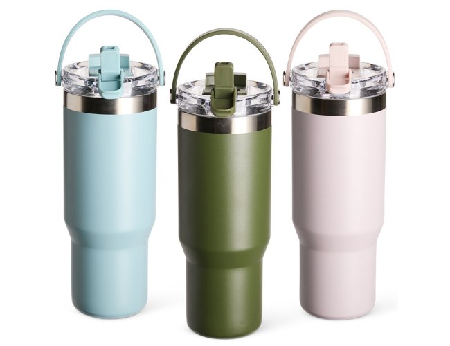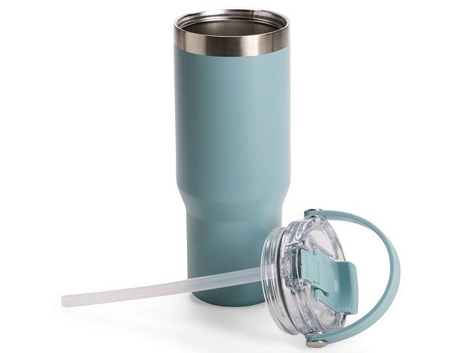 Especificações: Capacidade: até 900 ml - Material do corpo: aço inox - Isolamento: parede dupla com vedação a vácuo - Tampas: rosqueável plástica + tampa adicional com proteção do bocal - Bocal: bico flip - Acessórios: canudo plástico interno removível - Transporte: alça - Acabamento: pintura eletrostática (cor duradoura) - Medidas: Altura 24,8 cm | Largura 11 cm | Circunferência 28,8 cm - Peso aproximado: 461 g