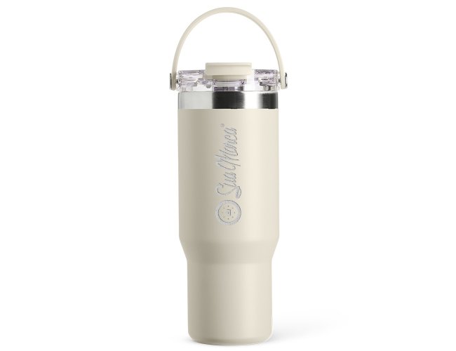 O Copo Térmico Personalizado Inox de 900ml XV18969 combina isolamento a vácuo, tampa de rosca e tampa extra com proteção do bocal para uso seguro. Beba como preferir pelo bico flip ou canudo removível, leve com facilidade pela alça e conte com a pintura eletrostática que resiste ao uso diário.