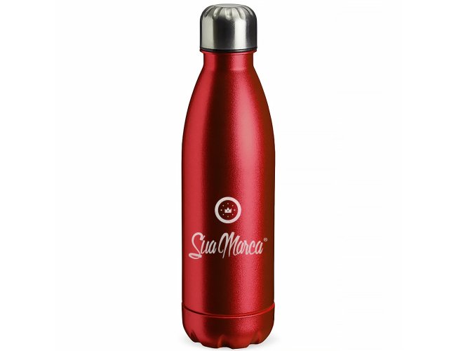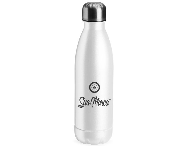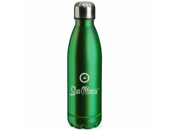 Garrafa personalizada GV053 com capacidade de 680ml, confeccionada em PVC atóxico com pintura metalizada. Possui tampa de aço inox com rosca que garante segurança contra vazamentos. Brinde moderno e elegante, ideal para eventos, campanhas promocionais e ações corporativas que valorizam a marca.