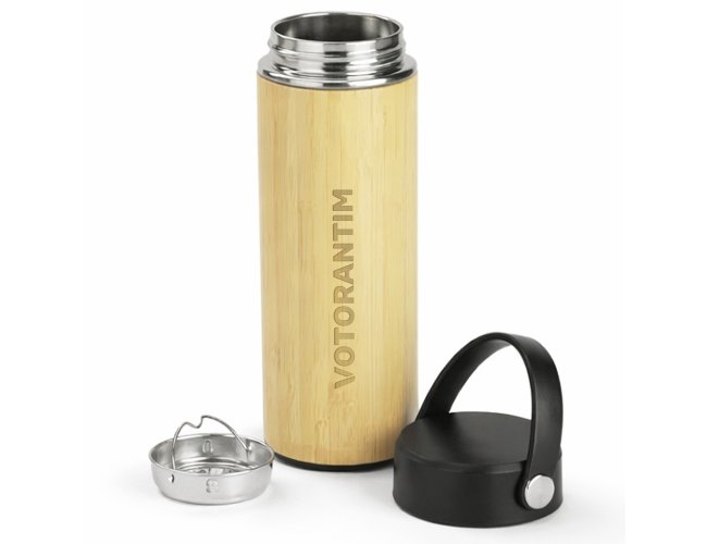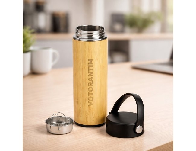 Brindes Personalizados: Garrafa Térmica Personalizada de Bambu 400ml XV19156