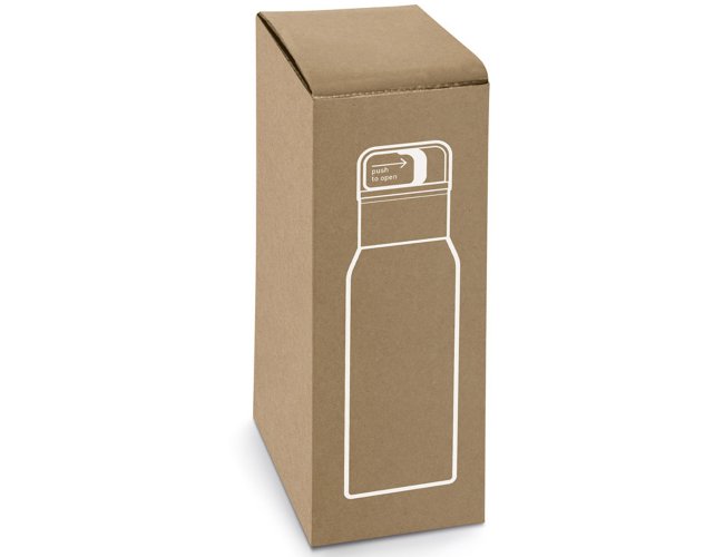 Garrafa Térmica Personalizada de Inox 590ml SV94376, confeccionado em aço inox 91% reciclado com parede dupla isolada a vácuo e parede interna revestida a cobre. A tampa em plástico PP é à prova de vazamentos e incorpora um botão. O acabamento da garrafa em mate. Capacidade total de até 590 mL. acompanha caixa presente de papel kraft reciclado. MEDIDA: Altura: 248mm X Circunferência: ø78. Peso Aproximado (g): 320.