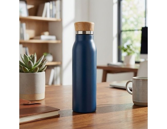 Projetada para durabilidade e praticidade, a garrafa térmica personalizada conta com tampa rosqueável em bambu, oferecendo conforto e sustentabilidade. Sua capacidade máxima de 600ml atende perfeitamente às necessidades de hidratação durante reuniões, treinamentos ou trabalho remoto, elevando o padrão de brindes funcionais no mercado.