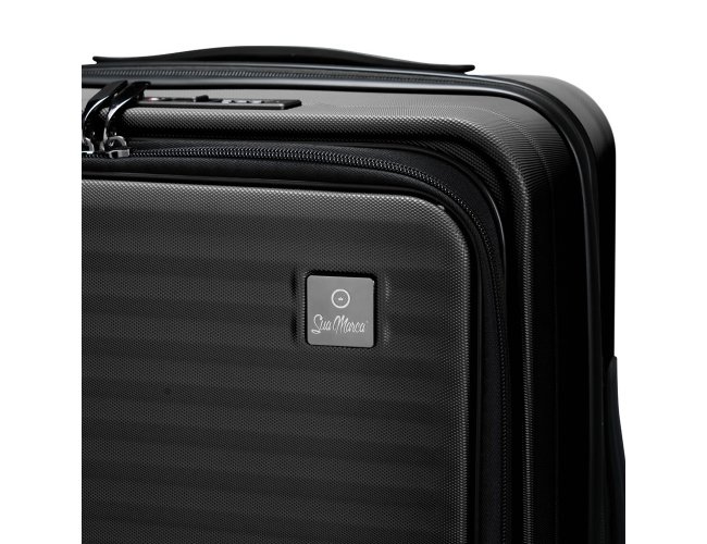 Mala de Bordo Personalizada de 32 Litros VX8216P, confeccionada em plástico ABS, conta com cadeado numérico TSA embutido para mais segurança. Abertura frontal com bolso para notebook de até 15.6, além de divisórias internas com zíperes e cinta compressora para roupas. Zíper externo expansível se encarrega de ampliar a capacidade da mala. Puxador retrátil de 3 estágios, duas alças de mão, apoios e ganchos laterais e rodinhas 360º. MEDIDA: Largura: 35,3 cm X Profundidade: 23,7 cm X Comprimento: 52,8 cm. Peso aproximado (g): 2907.