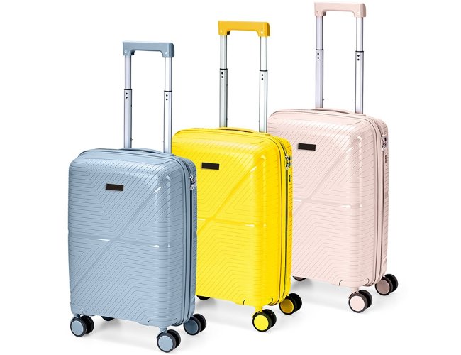 Mala de Viagem Personalizada 30 Litros XV8262A: feita em plástico resistente, tem divisória interna com bolso em tela e cinta compressora para manter tudo no lugar. A locomoção é leve com 4 rodinhas 360° e puxador com ajuste de nível. Segurança garantida com cadeado numérico TSA. Acompanha placa metálica para personalização da sua marca.