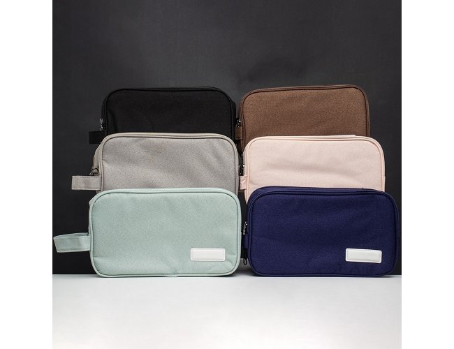 Feita em poliéster e com proteção contra respingos, a necesseire personalizada XV18873 mantém tudo no lugar graças aos três módulos internos (divisórias, bolsinhos e bolso principal telado). Leve para academia, viagens ou dia a dia use a alça de mão para transporte e a alça porta-chaves para acesso rápido. O espaço emborrachado valoriza a marca com acabamento de destaque. Especificações: Material: poliéster - Resistência: à água (contra respingos) - Compartimentos: 3 (com divisórias, 2 bolsinhos e principal com tela) - Alças: 1 de mão + 1 para chaves - Medidas: Altura : 14,5 cm x Largura : 25,5 cm x Profundidade : 10 cm- Peso aproximado: 165 g