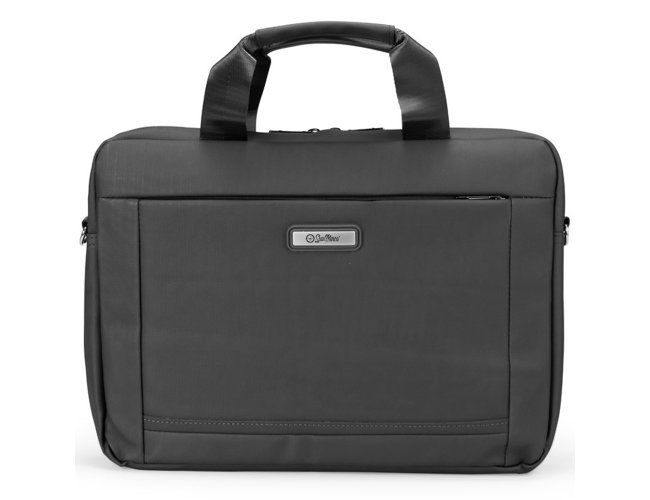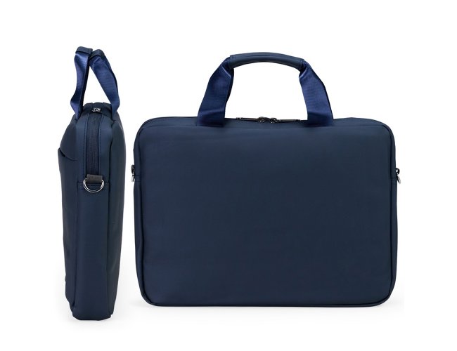 Pasta para Notebook Personalizada XV19045, confeccionada em couro sintético impermeável com fechamento em zíper e capacidade para aparelhos de até 15,6 polegadas. Possui dois compartimentos: o principal, com revestimento acolchoado, quatro bolsos abertos de tamanhos diferentes e duas divisórias para canetas; e o frontal, com plaquinha metálica fixa na parte externa. Conta ainda com duas alças de mão e um par de abas metálicas para alças removíveis. Acompanha alça de ombro ajustável. MEDIDA: Altura: 27 cm X Largura: 37 cm X Profundidade: 6 cm. Peso aproximado (g): 389