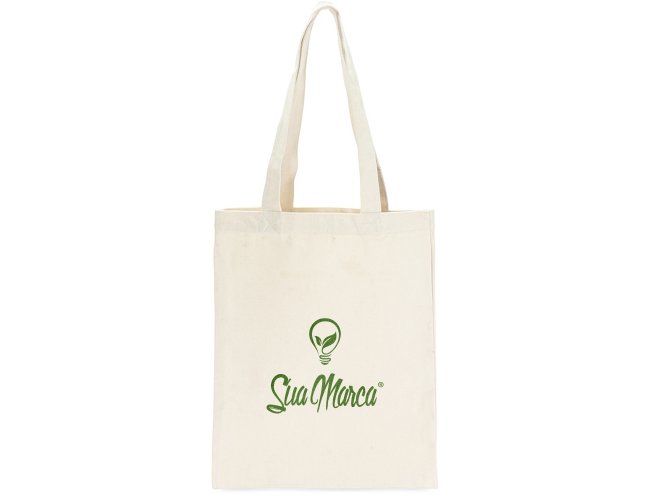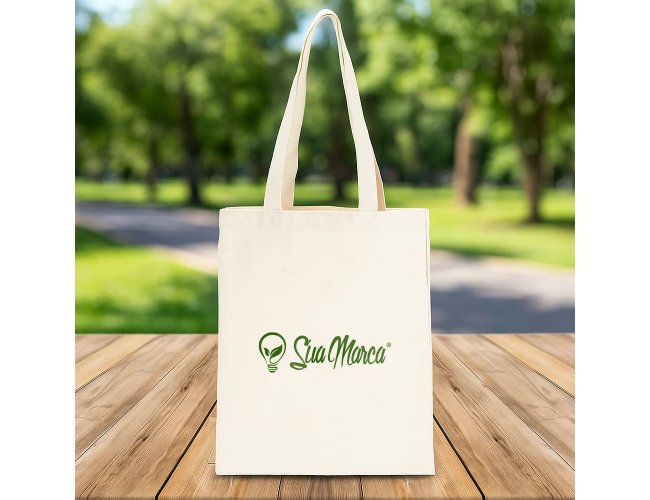 Sacola Ecológica Personalizada de Lona XV19037: feita em lona resistente a respingos d’água, é forte para o dia a dia e fácil de limpar. As duas alças com costura interna garantem firmeza no transporte — ideal para compras, eventos e kits corporativos.